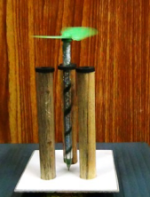 Drill three holes in the flat base so that screws can be fixed in them. Drill small holes in the bottoms of the rods. Now fix the rods on the base using screws. Now take three magnets and keep similar poles upwards. Fix the magnets on the top of the rods using quick fix. Fix a ring magnet on the pencil again with the help of quick fix at the same distance from the tip. When placed on the tip, the four magnets should be at the same height and all the upward poles should be of same nature. Fix a two-blade wane on the top of the pencil. Now the apparatus is ready. Place the pencil vertically with its tip on the flat base, right at the center between the three rods. And it stands comfortably. Give a slight sideways push to the wanes to rotate it. The pencil will keep rotating for a long time. You can decorate the pencil so that when it rotates it shows interesting patterns.