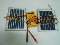 - Put two panels side by side and measure their voltage outputs. Without changing the geometry, connect them in parallel and measure voltage output.